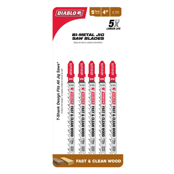 4″ 6TPI Bi-Metal Jig Saw Blades for Wood (5-Pack)